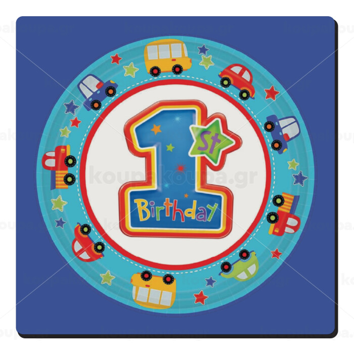 Happy 1st Birthday, Τετράγωνο μαγνητάκι ξύλινο 6x6cm