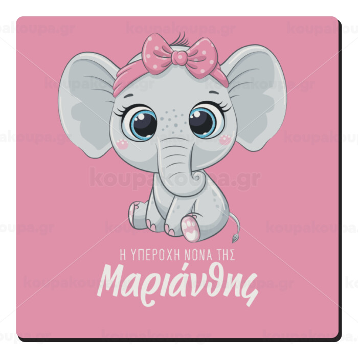 Η νονά μου, ελεφαντάκι ροζ, Τετράγωνο μαγνητάκι ξύλινο 6x6cm
