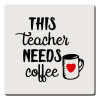 Τhis teacher needs coffee, Τετράγωνο μαγνητάκι ξύλινο 6x6cm