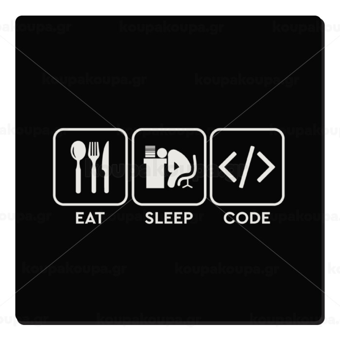 Eat Sleep Code, Τετράγωνο μαγνητάκι ξύλινο 6x6cm