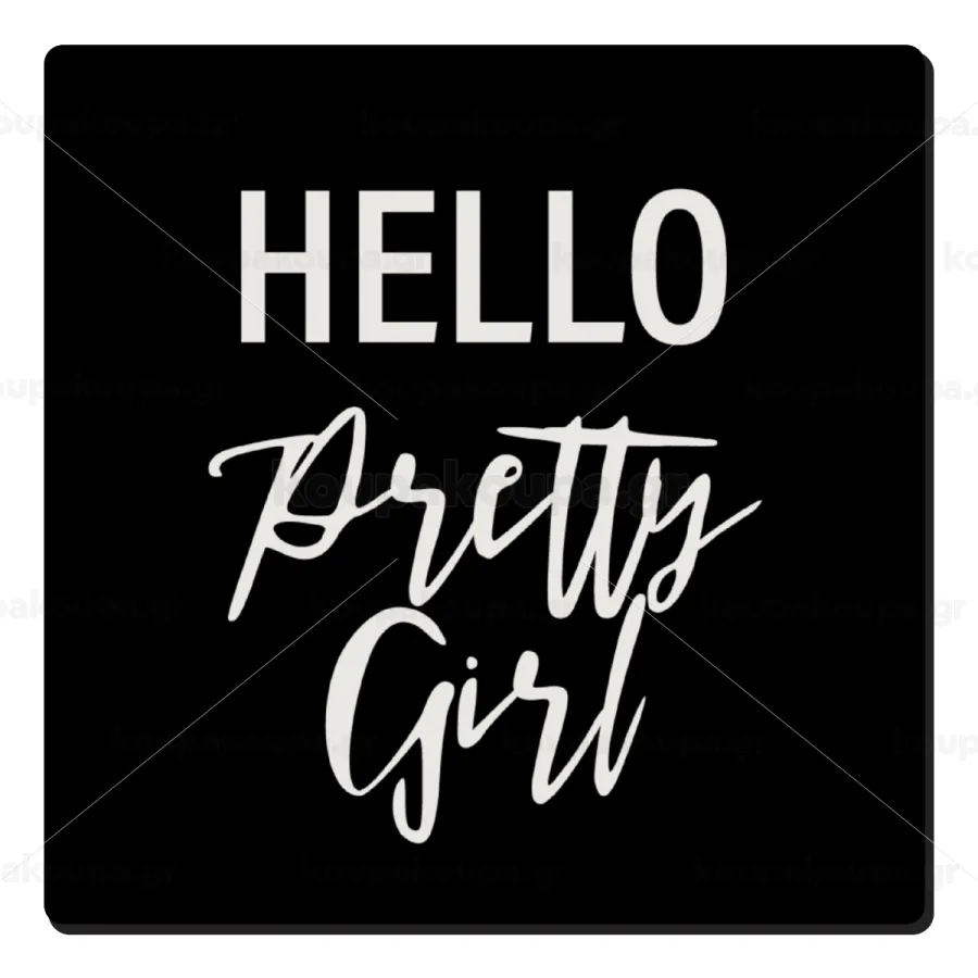 Hello pretty girl, Τετράγωνο μαγνητάκι ξύλινο 6x6cm