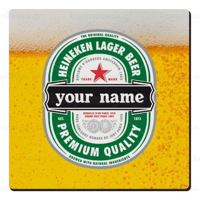Heineken with name, Τετράγωνο μαγνητάκι ξύλινο 6x6cm