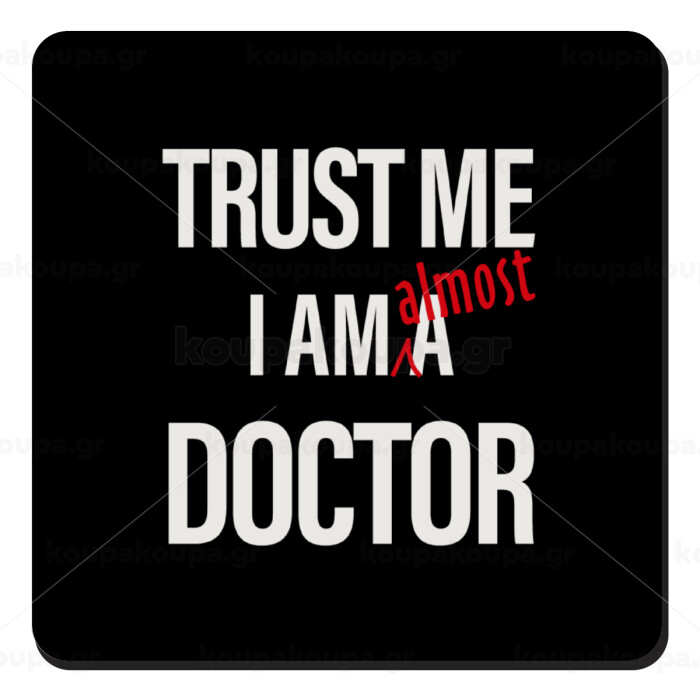 Trust me, i am (almost) Doctor, Τετράγωνο μαγνητάκι ξύλινο 9x9cm