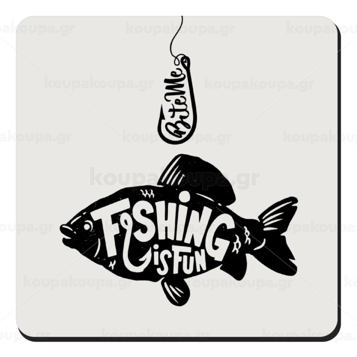 Fishing is fun, Τετράγωνο μαγνητάκι ξύλινο 9x9cm
