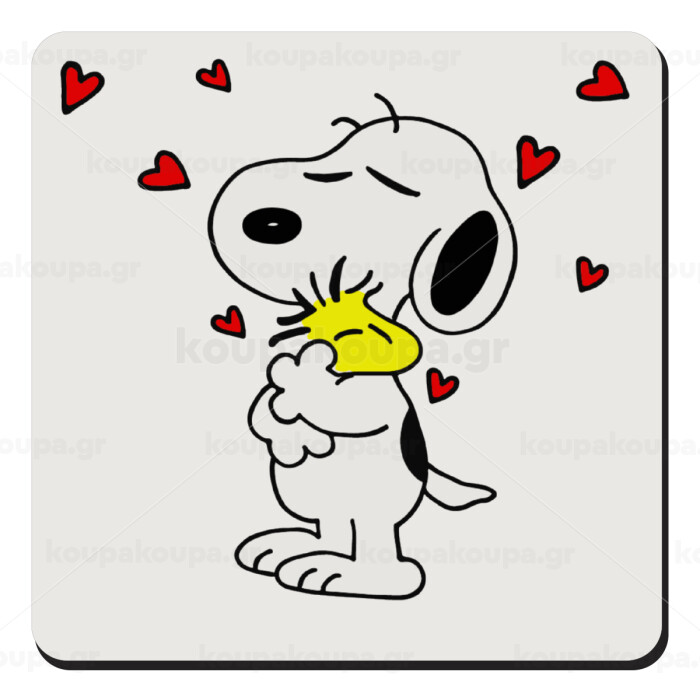 Snoopy Love, Τετράγωνο μαγνητάκι ξύλινο 9x9cm