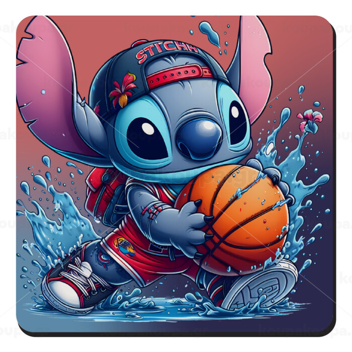 Stitch Basketball, Τετράγωνο μαγνητάκι ξύλινο 9x9cm
