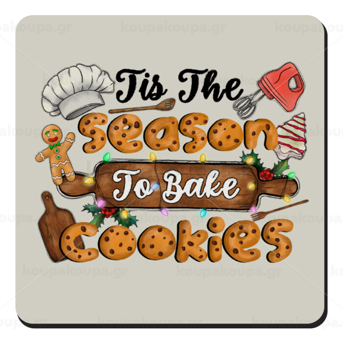 Tis The Season To Bake Cookies, Τετράγωνο μαγνητάκι ξύλινο 9x9cm
