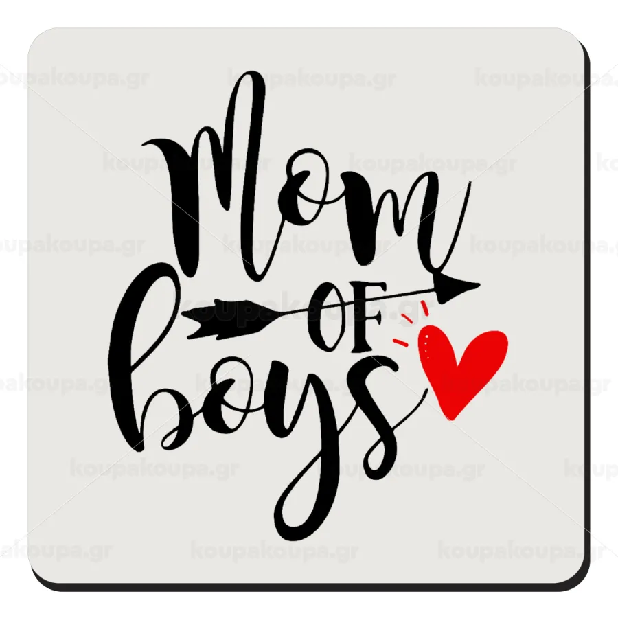 Mom of boys, Τετράγωνο μαγνητάκι ξύλινο 9x9cm