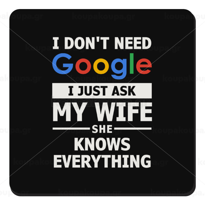 I don't need Google, just ask my WIFE, Τετράγωνο μαγνητάκι ξύλινο 9x9cm