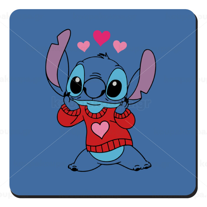 Stitch heart, Τετράγωνο μαγνητάκι ξύλινο 9x9cm