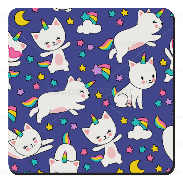 Cats unicorns, Τετράγωνο μαγνητάκι ξύλινο 9x9cm