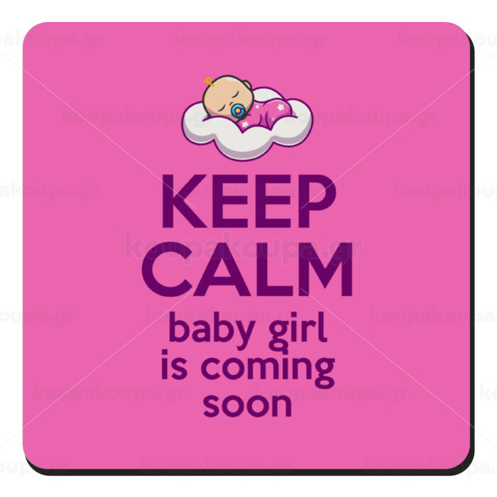 KEEP CALM baby girl is coming soon!!!, Τετράγωνο μαγνητάκι ξύλινο 9x9cm