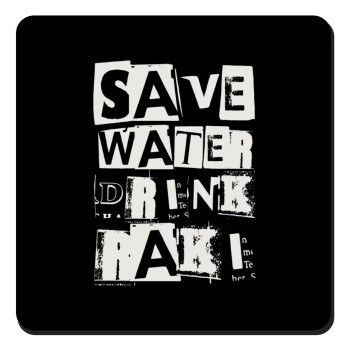 Save Water, Drink RAKI, Τετράγωνο μαγνητάκι ξύλινο 9x9cm
