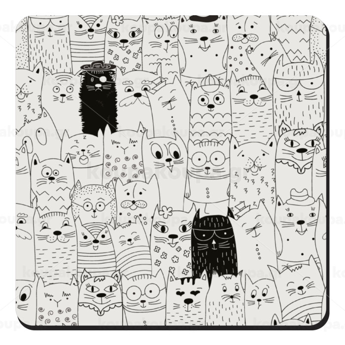 Γάτες γραμμικό σχέδιο, Τετράγωνο μαγνητάκι ξύλινο 9x9cm