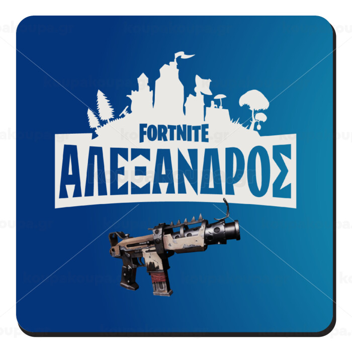 Fortnite with gun με το όνομα σου, Τετράγωνο μαγνητάκι ξύλινο 9x9cm