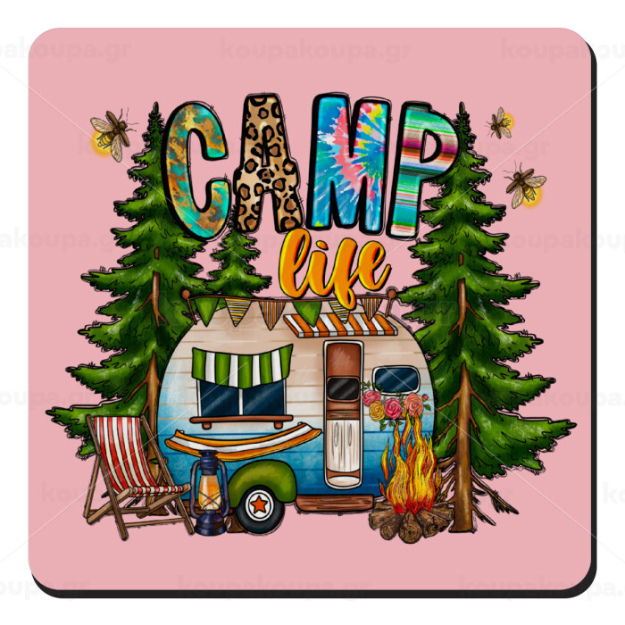 Camp Life, Τετράγωνο μαγνητάκι ξύλινο 9x9cm