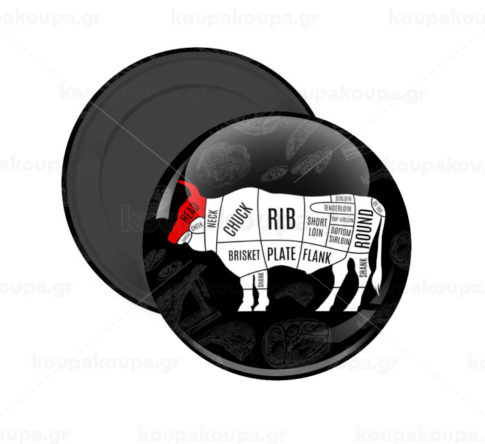Diagrams for butcher shop, Μαγνητάκι ψυγείου στρογγυλό διάστασης 5cm