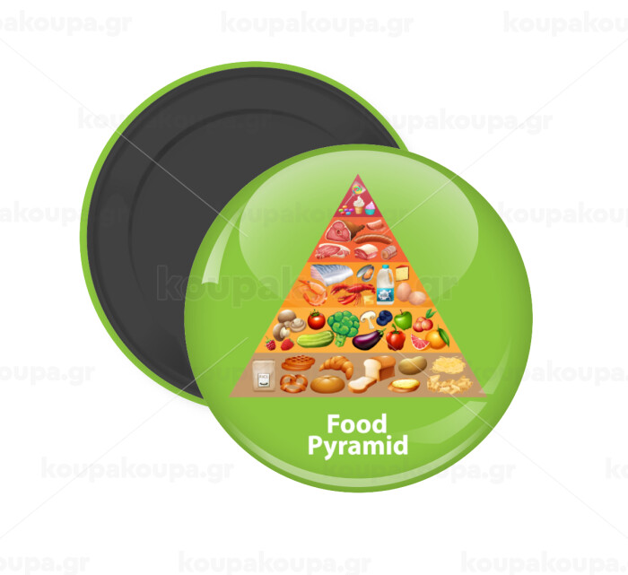 Food pyramid chart, Μαγνητάκι ψυγείου στρογγυλό διάστασης 5cm