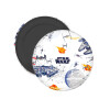 Round, shiny fridge magnet, the magnets can be placed on a fridge or any other metallic surface. Great durability over time due to the plasticization of the subject and the plastic protective back on the magnet.