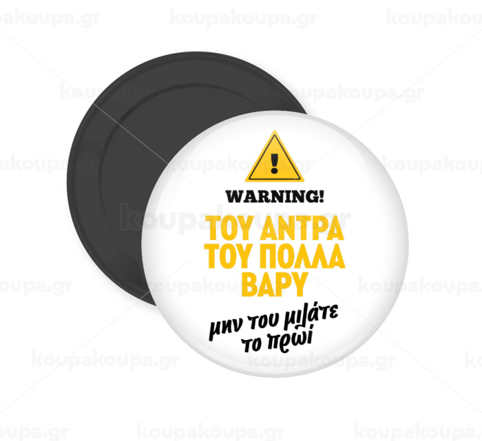 Του άντρα του πολλά βαρύ, Μαγνητάκι ψυγείου στρογγυλό διάστασης 5cm