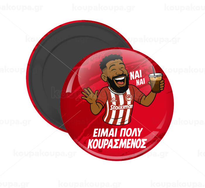 Ροντινέι, "ΠΟΛΥ ΚΟΥΡΑΣΜΕΝΟΣ", Μαγνητάκι ψυγείου στρογγυλό διάστασης 5cm