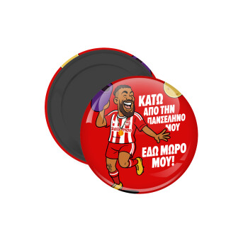 Round, shiny fridge magnet, the magnets can be placed on a fridge or any other metallic surface. Great durability over time due to the plasticization of the subject and the plastic protective back on the magnet.