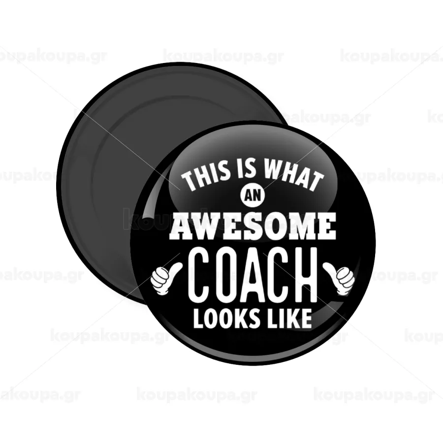 This is what an awesome COACH looks like!, Μαγνητάκι ψυγείου στρογγυλό διάστασης 5cm