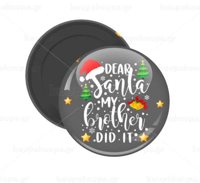Dear santa my Brother did it, Μαγνητάκι ψυγείου στρογγυλό διάστασης 5cm