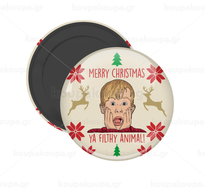 home alone, Merry Christmas ya filthy animal, Μαγνητάκι ψυγείου στρογγυλό διάστασης 5cm