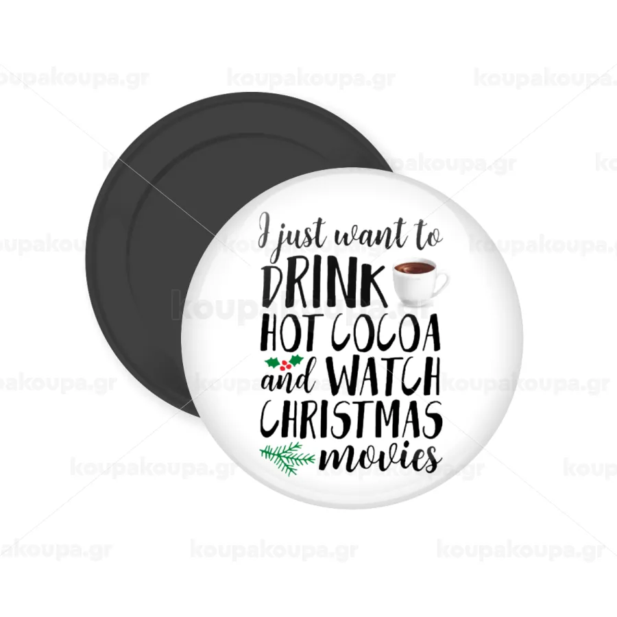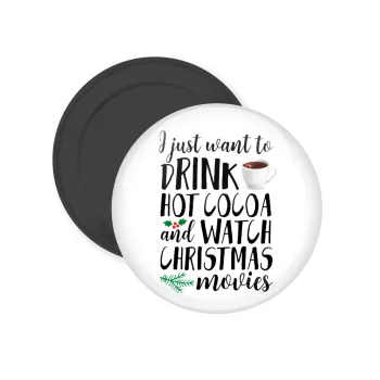 I just want to drink hot cocoa and watch christmas movies, Μαγνητάκι ψυγείου στρογγυλό διάστασης 5cm