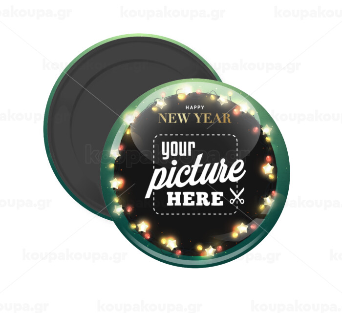 PHOTO xmas lights, Μαγνητάκι ψυγείου στρογγυλό διάστασης 5cm