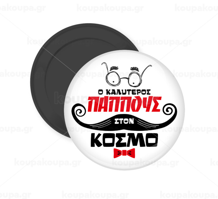 Ο καλύτερος παππούς του κόσμου!, Μαγνητάκι ψυγείου στρογγυλό διάστασης 5cm