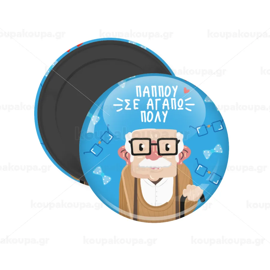 Παππού σε αγαπώ πολύ!, Μαγνητάκι ψυγείου στρογγυλό διάστασης 5cm