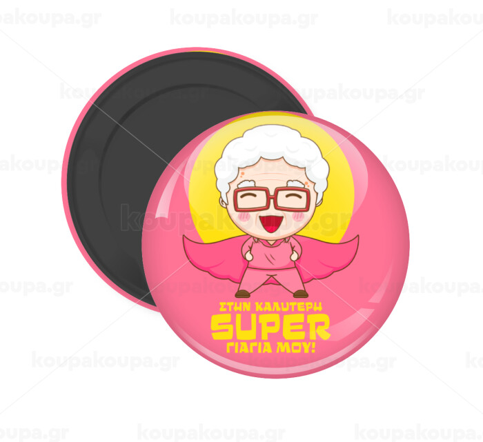 To my best Super Grandma!, Μαγνητάκι ψυγείου στρογγυλό διάστασης 5cm