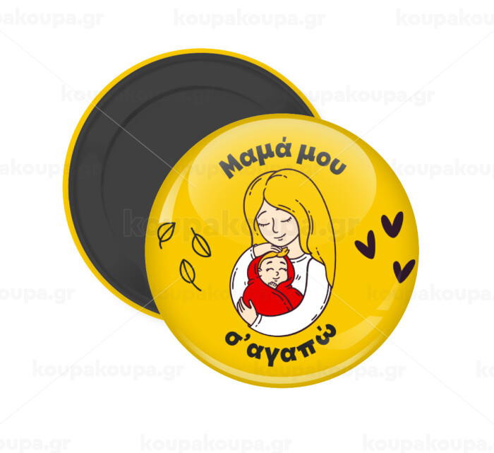 Μανούλα σ'αγαπώ αγκαλιά!, Μαγνητάκι ψυγείου στρογγυλό διάστασης 5cm