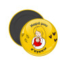 Round, shiny fridge magnet, the magnets can be placed on a fridge or any other metallic surface. Great durability over time due to the plasticization of the subject and the plastic protective back on the magnet.