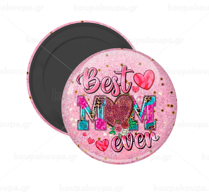 Best mom ever Mother's Day pink, Μαγνητάκι ψυγείου στρογγυλό διάστασης 5cm