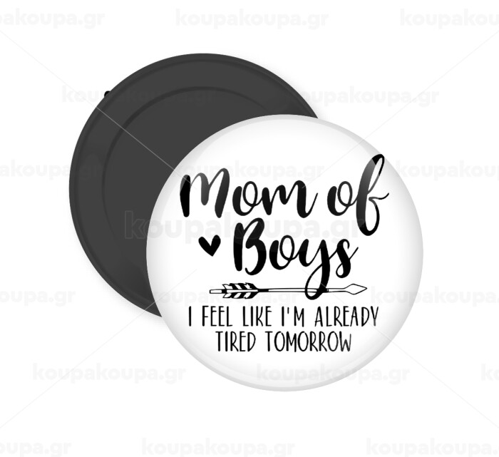 Mom of boys i feel like im already tired tomorrow, Μαγνητάκι ψυγείου στρογγυλό διάστασης 5cm