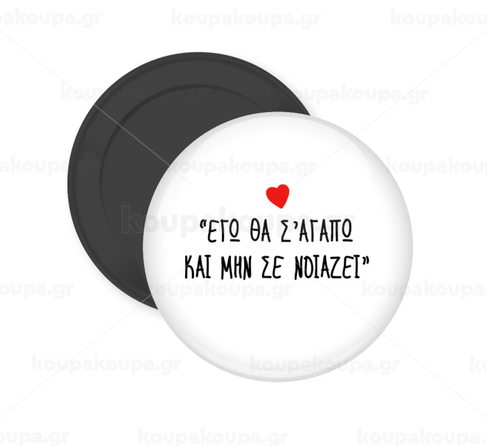 ΕΓΩ ΘΑ Σ’ΑΓΑΠΩ ΚΑΙ ΜΗΝ ΣΕ ΝΟΙΑΖΕΙ..., Μαγνητάκι ψυγείου στρογγυλό διάστασης 5cm