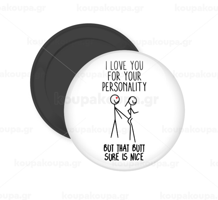 I Love you for your personality, Μαγνητάκι ψυγείου στρογγυλό διάστασης 5cm