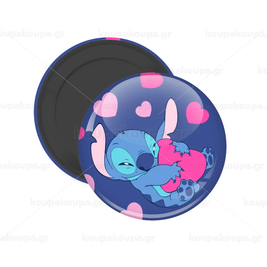 Lilo & Stitch hugs and hearts, Μαγνητάκι ψυγείου στρογγυλό διάστασης 5cm