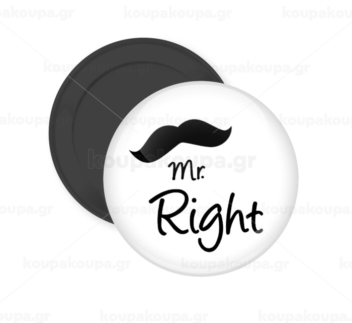 Mr right Mustache, Μαγνητάκι ψυγείου στρογγυλό διάστασης 5cm