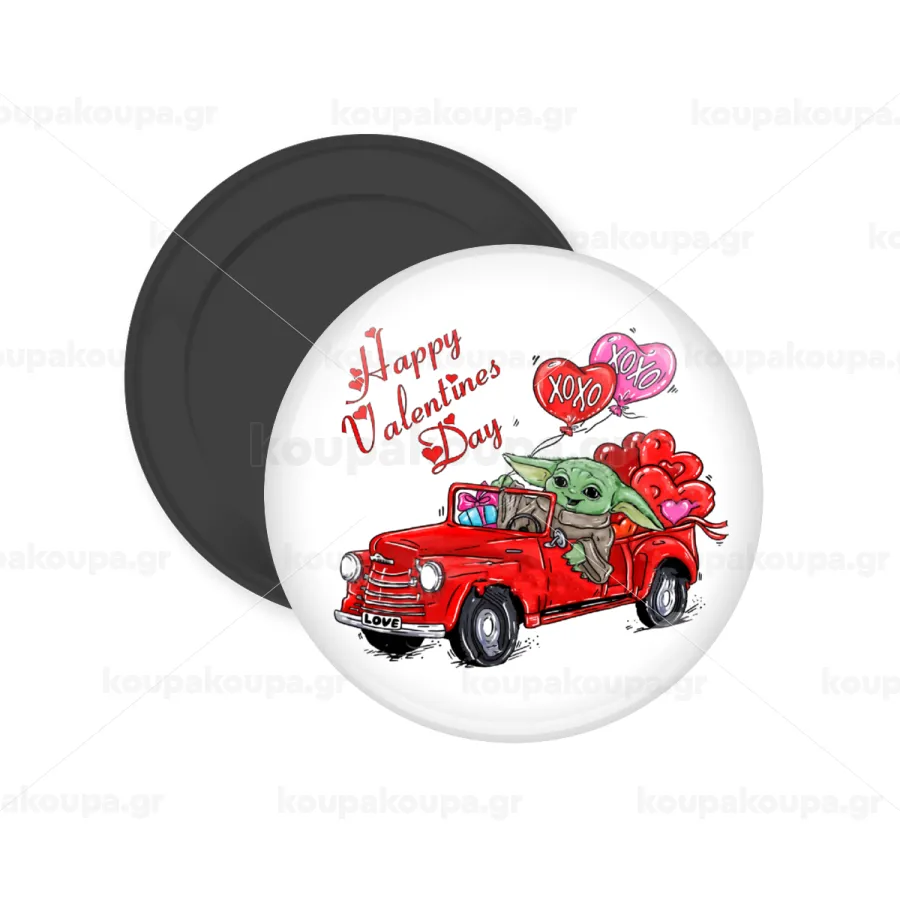 Yoda, happy valentines day (xoxo), Μαγνητάκι ψυγείου στρογγυλό διάστασης 5cm
