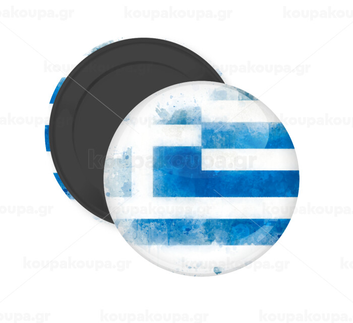 Ελληνική σημαία watercolor, Μαγνητάκι ψυγείου στρογγυλό διάστασης 5cm