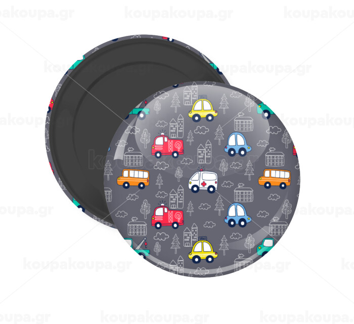 Hand drawn childish set with cars, Μαγνητάκι ψυγείου στρογγυλό διάστασης 5cm