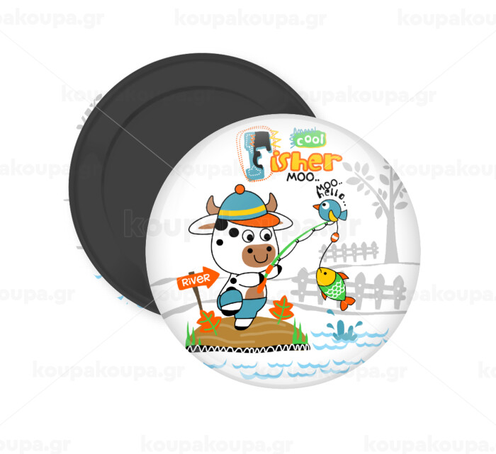 Kids Fisherman, Μαγνητάκι ψυγείου στρογγυλό διάστασης 5cm