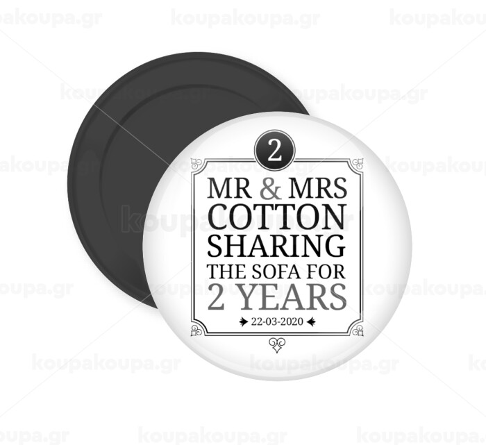 Mr & Mrs Sharing the sofa, Μαγνητάκι ψυγείου στρογγυλό διάστασης 5cm