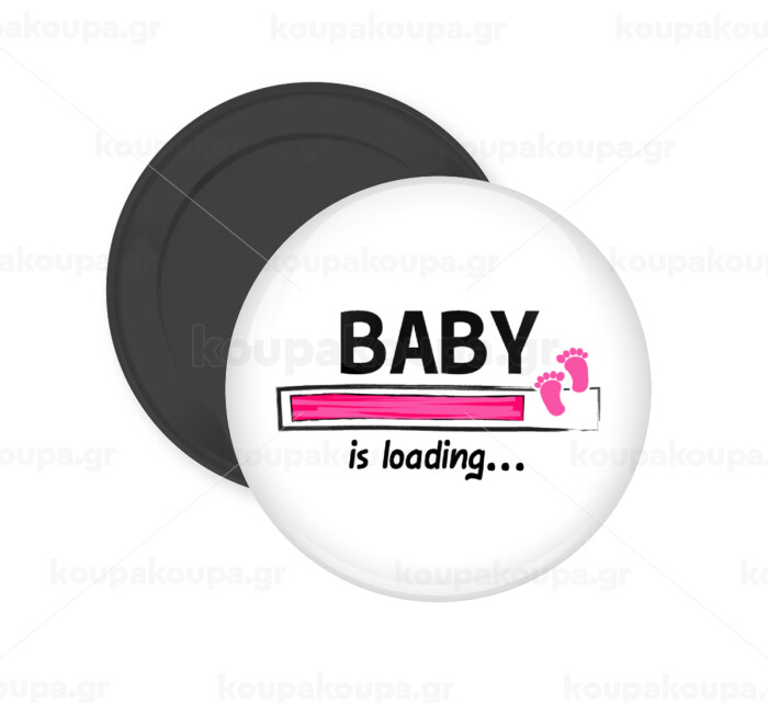 Baby is Loading GIRL, Μαγνητάκι ψυγείου στρογγυλό διάστασης 5cm