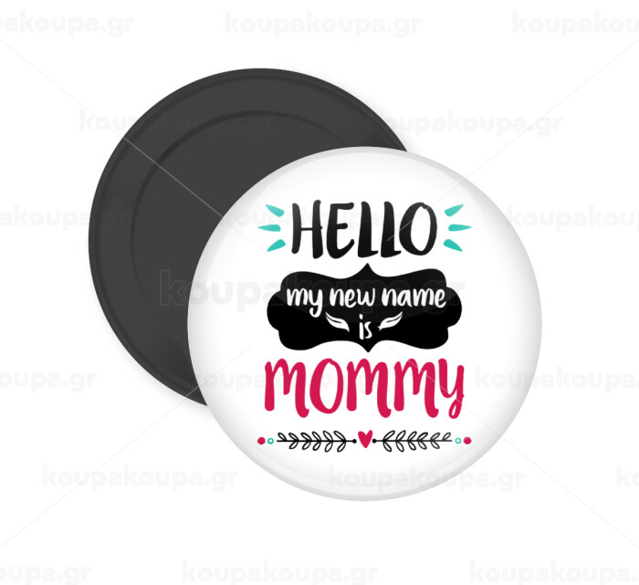 Hello, my new name is Mommy, Μαγνητάκι ψυγείου στρογγυλό διάστασης 5cm