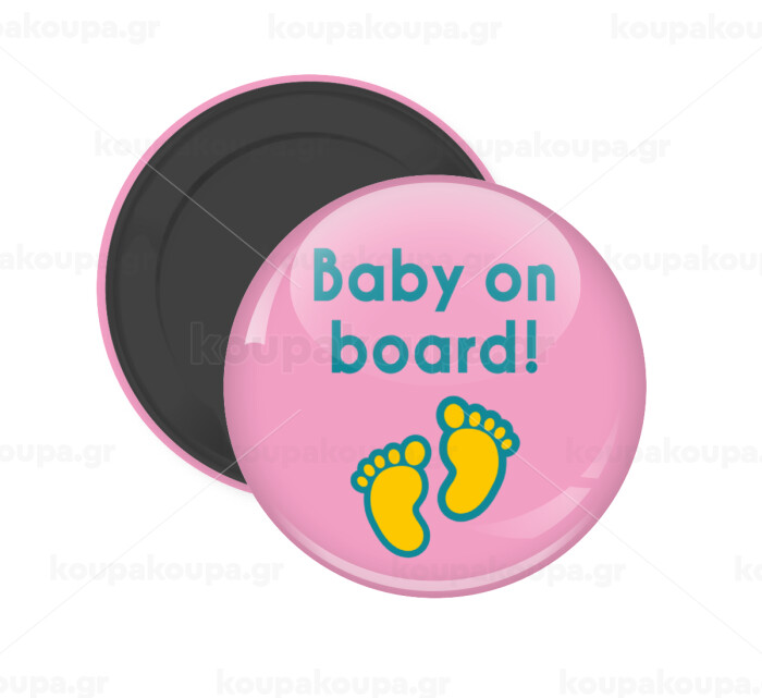 Baby on Board πατουσα Κορίτσι, Μαγνητάκι ψυγείου στρογγυλό διάστασης 5cm